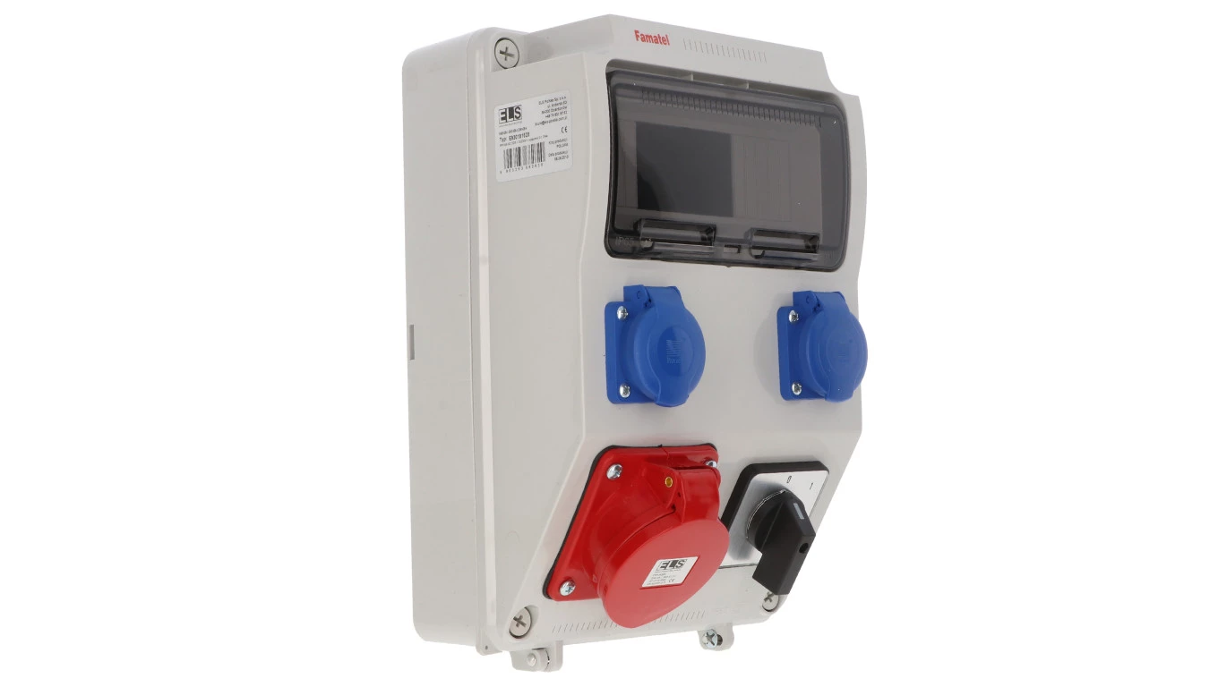 Zestaw zasilający PRYMA 9D skośna 32A/5P + 2x230V + wyłącznik 0-1 IP44 E930101520