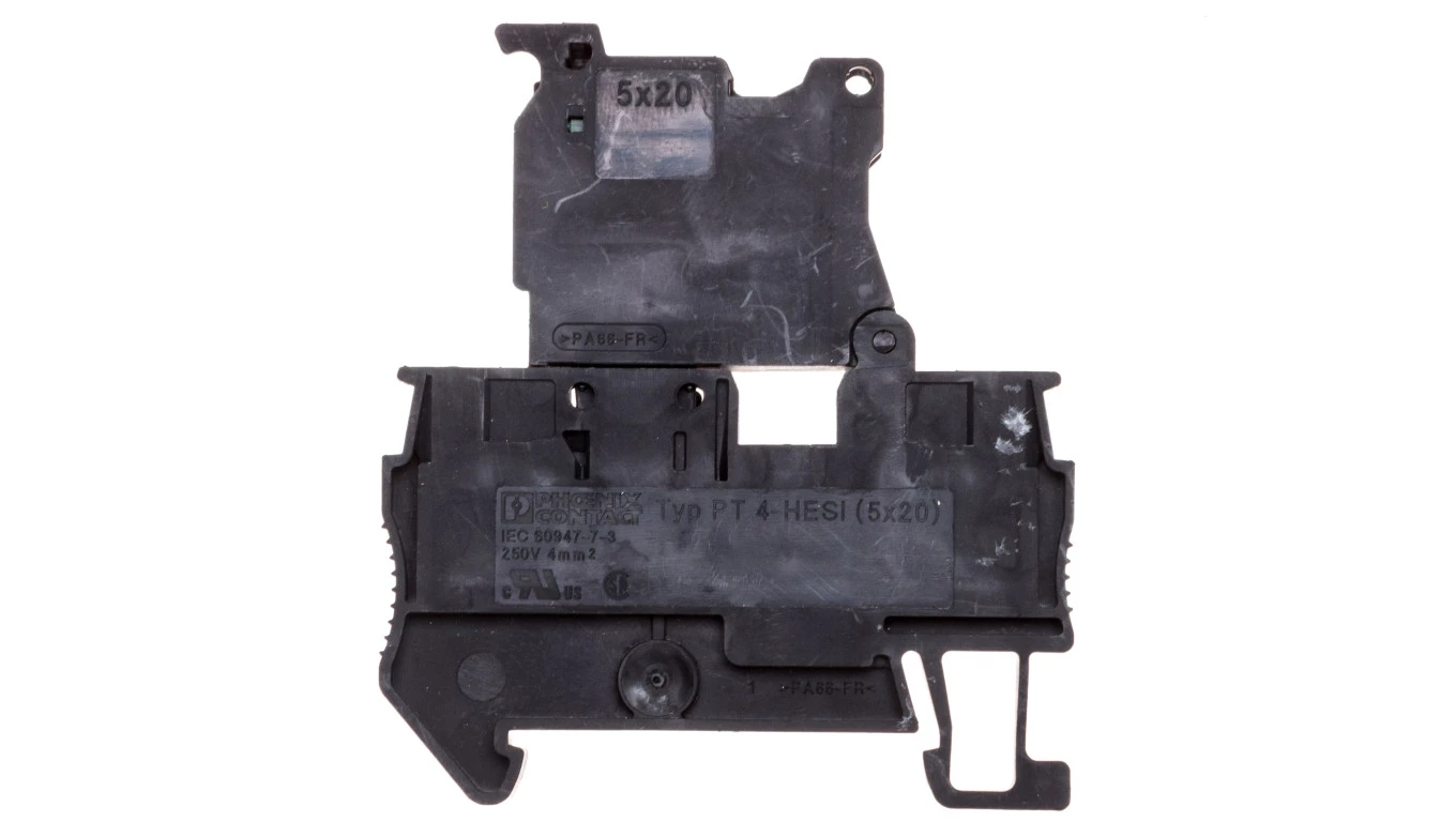 Złączka szynowa z bezpiecznikiem 5x20 4-przewodowa 4mm2 czarna UT 4-L/HESI (5X20) 3214325 /50szt./