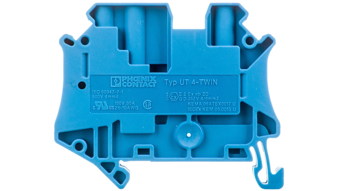 Złączka szynowa 3-przewodowa 4mm2 niebieska Ex UT 4-TWIN BU 3044500 /50szt./