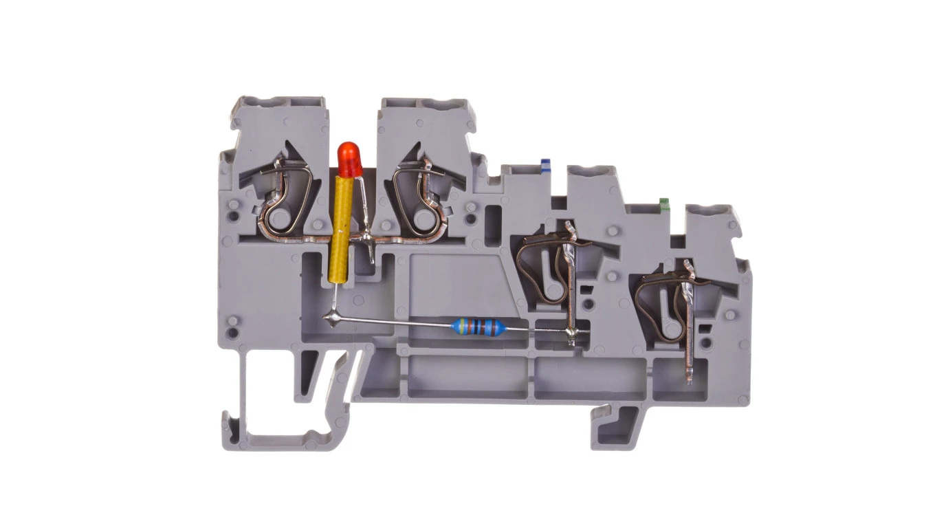 Złączka szynowa 3-przewodowa z LED 2,5mm2 do elementów wykonawczych typu PNP szara 270-572/281-434 /50szt./
